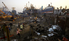 Gangs of workers dismantle the giant vessels by hand, often leading to deaths, injuries, explosions and chemical spillages, as well as contamination of the beaches and waters around the breaking yards and destruction of coastal mangrove forests.