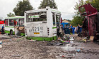Emergency workers and investigators at the site of the crash between a lorry and a bus in a Moscow suburb. Photograph: Igor Ivashin/AP Photograph: Igor Ivashin/AP