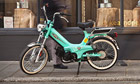 There is no ignition, the bike doesn't have a battery and starts with a push of its pedals – you can actually ride it very slowly as a bicycle using the pedals. In theory you might need to add some leg power to aid the trifling engine up the steepest of hills, but I rode up Crystal Palace hill in south London and it put in a heroic Chris Froome-like performance. It's an automatic and has two gears with a top speed of about 28mph – which feels fast enough. It weighs in at 57kg and it'll do more than 100 miles to the gallon. I filled it up and it cost a whopping £2.40 at the pump. It's congestion-free and the road tax is £17. You can ride it on a driver's licence if you passed before 2001 – otherwise you will need to pass your CBT and be over 16. It's sturdily built, as if it has every intention of being here in another 60 years. It's Tomos the tank engine.