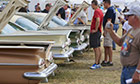 Car buffs look at a 1956 Chevrolet Belair 4 door sedan on Friday during a preview for the auction. Many of the cars have never been titled, though they show the wear of decades left outsidePhotograph: Nati Harnik/APClassic cars are lined up for auction in a field on the Lambrecht family farmPhotograph: Scott Olson/GettyPhil Rothmeier of Madison Lake, Minnesota, poses in front of a 1954 Ford F-100 pickup truck he plans to bid on. An estimated 10,000 to 12,000 car enthusiasts from around the world are expected in Pierce, a town with a population of 1,700Photograph: Nati Harnik/APCar enthusiasts look over a 1959 Chevrolet Belair 4-door sedanPhotograph: Nati Harnik/APCar buffs survey a 1959 Chevrolet Impala, foreground, and other Chevrolet vehicles. Many of 500 cars being offered at the auction have never been titled and have less than 20 miles on themPhotograph: Nati Harnik/APCar buffs look over 1965 Chevrolet Impala 2 door hardtop on Friday. Bidders from about a dozen countries have already started the bidding at Proxibid.comPhotograph: Nati Harnik/APMany of the cars have spend decades stored outside at Lambrecht's farm in NebraskaPhotograph: Nati Harnik/AP