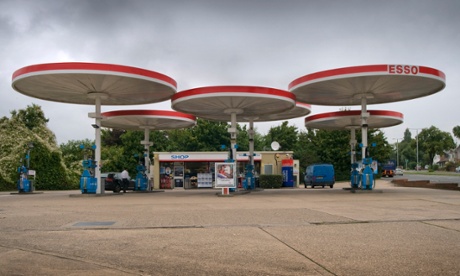 Just as topical today, this early advert for a new asphalt surface that covered potholes was crucial to a new road building programmePhotograph: English HeritageArgyll's Car Showroom, London in 1905, which featured a lift to the rooftop where cars were taken for 'grooming'Photograph: National Motor Museum/English HeritageThis petrol station in Essex was built by the AA in 1919-20 – one of the first in Great BritainPhotograph: The Automibile Association/English HeritagePreston Bus Station and Car Park, which was built in the 60s is now a Grade II listed buildingPhotograph: Alun Bull/English HeritageThis early filling station on the Euston Road in London is recognisable by the petrol pumps, but the uniformed attendant and sense of space seem odd todayPhotograph: Bedford Lemere & Co/English HeritageTraffic seen at Wellington Arch and Hyde Park Corner in 1930Photograph: English HeritageThe Ford factory at Dagenham opened in 1931 and was the largest car factory in EuropePhotograph: English HeritageA policeman controls traffic in London in 1960 before traffic lights and roundabouts came in to regular usePhotograph: English HeritageThe Esso filling station on the A6, Leicester is one of the few surviving buildings commissioned from industrial designer Eliot Noyes by MobilPhotograph: Steve Cole/English HeritageCoventry Inner Ring Road built between 1962 and 1974 is one of the most highly developed and tightly drawn inner ring roads of any city in EnglandPhotograph: English Heritage